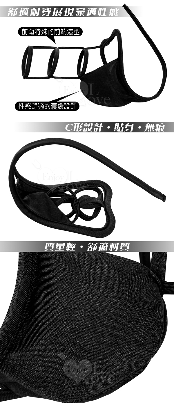 【描 述】男款C字褲比女款要大一些,前面部位為激凸大囊袋,根據男性器官特別設計,穿著舒適,且不易掉下。櫃框架為高彈性