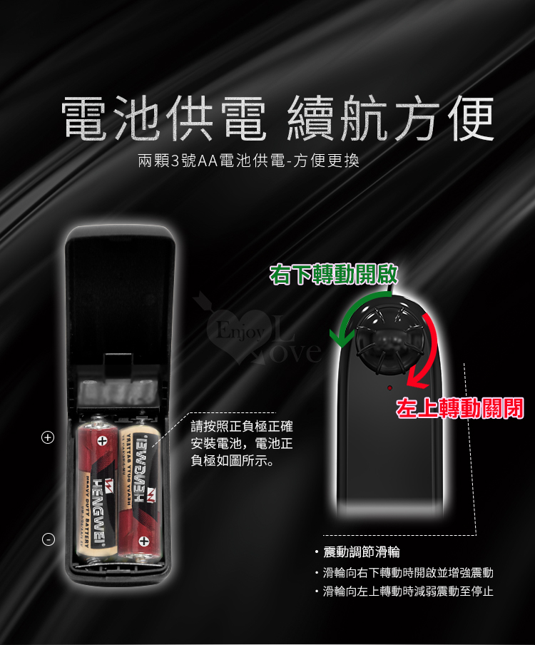 在頭部內置一個震動器,而控制器設計在底部,使用旋鈕可微調控制震動強弱。