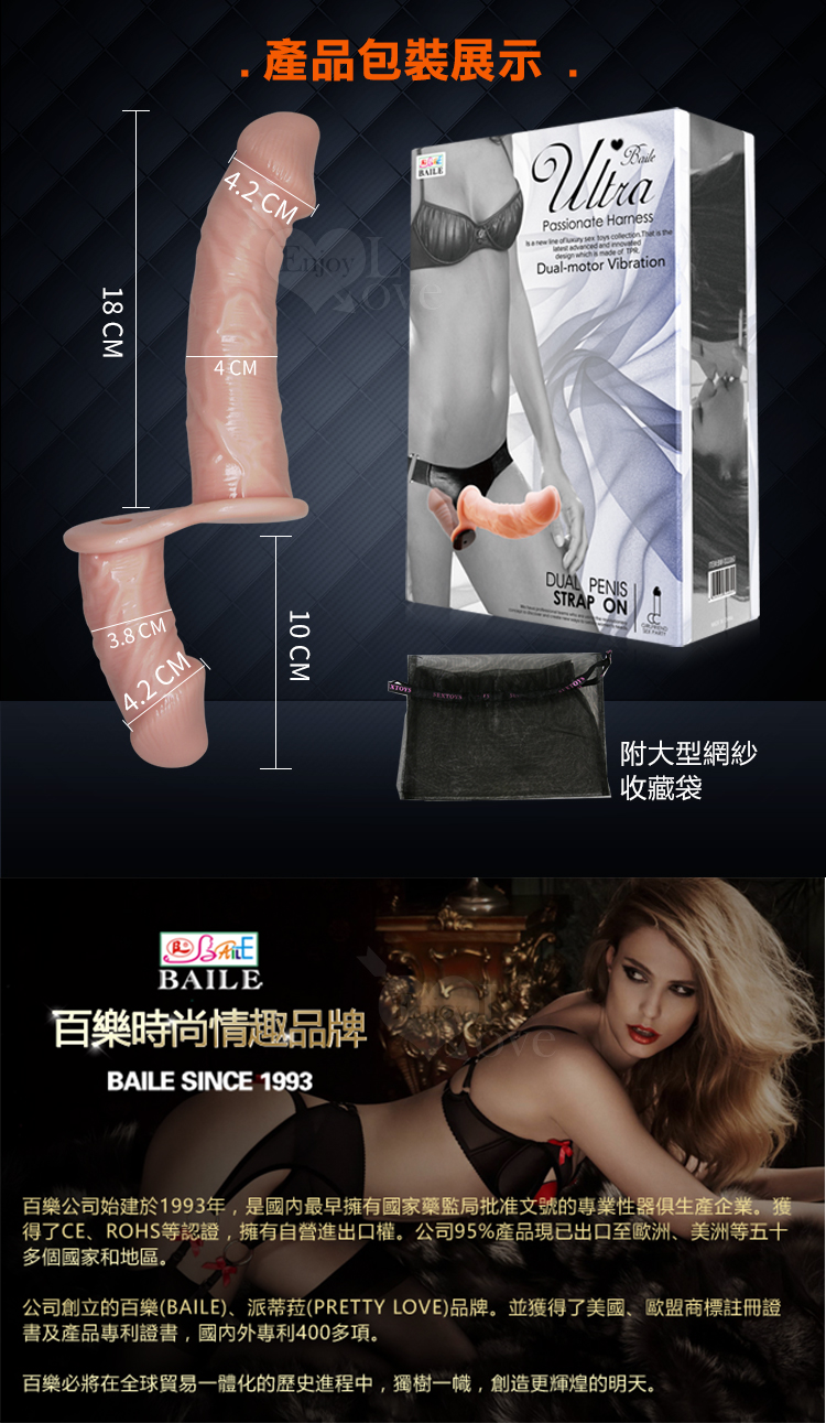 穿戴者可將陰塞插入自己的陰道,就可以開始用前方凸出的粗大假陽具讓女伴感受被抽插的強烈快感,二人雙穴同時亨受極樂的酥麻快感,雙雙同赴高潮仙境!