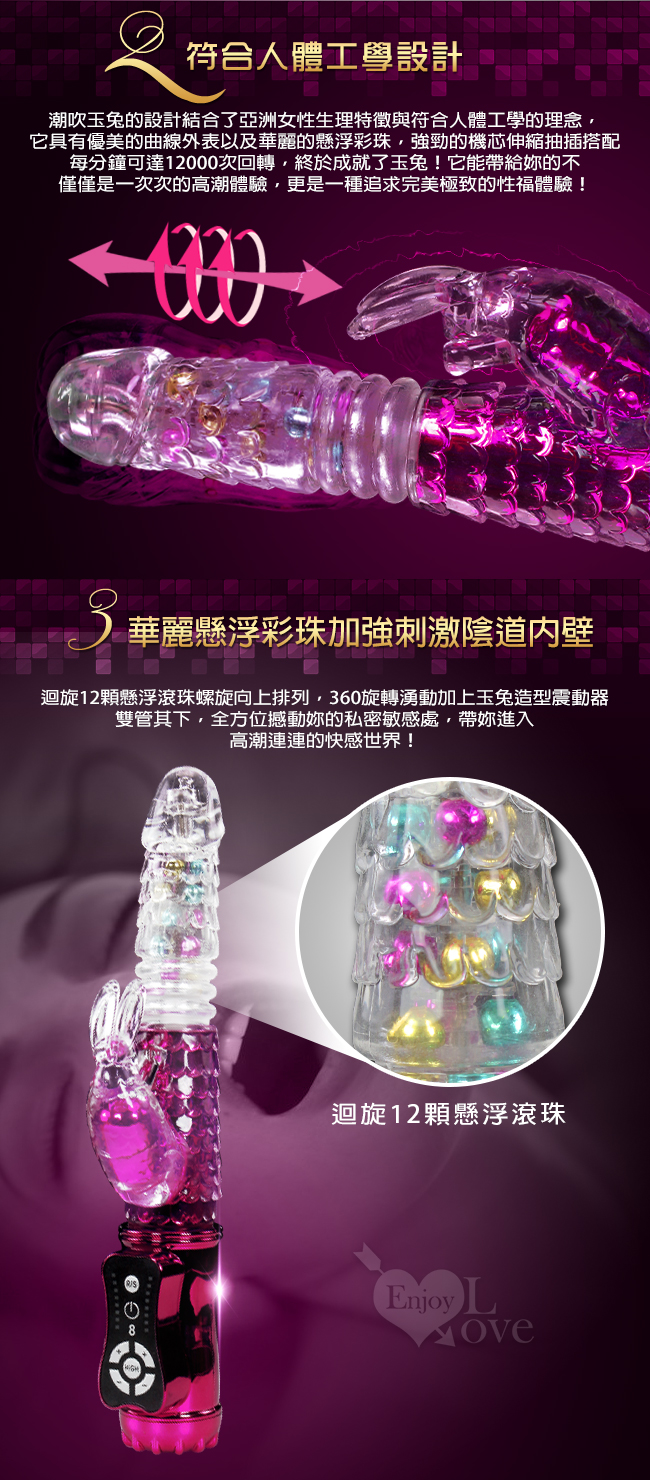 全自動伸縮控制,多速震動刺激,左右迴旋欲罷不能,小頭玉兔造型,體驗更緊密接觸,內外同步享受更刺激!