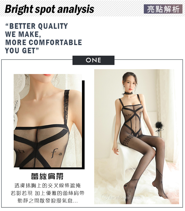 當前位置: 首頁 > 角色扮演服 > 貓裝/網衣 > 《FEE ET MOI》絲襪連身衣!蕾絲肩帶交叉線條字母元素設計裝