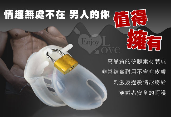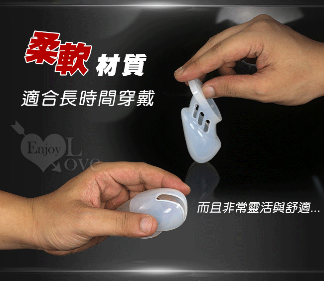 此這男性貞操竉及卡環是由高品質的硅膠素材製成,非常結實耐用,如同嬰兒奶嘴材質,不會有皮膚刺激及過敏情形,將給穿戴者安全的呵護。