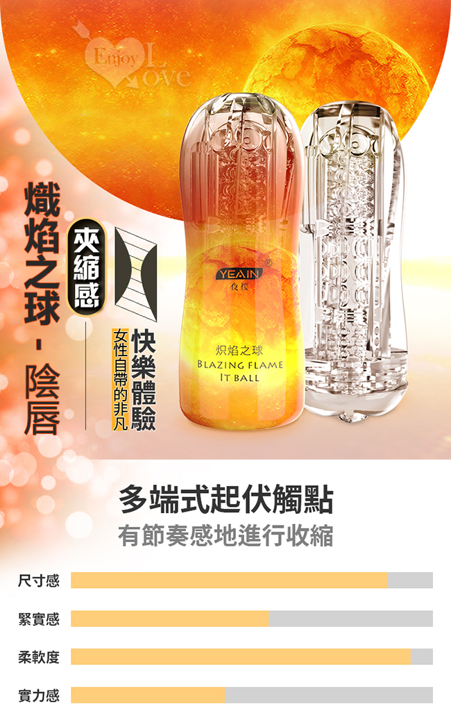 當前位置: 首頁 > 男性用品 > 自慰杯/飛機杯 > YEAIN 燃燒之燄 ‧ 夾縮多端式起伏觸點快感鍛鍊自慰杯﹝陰唇﹞