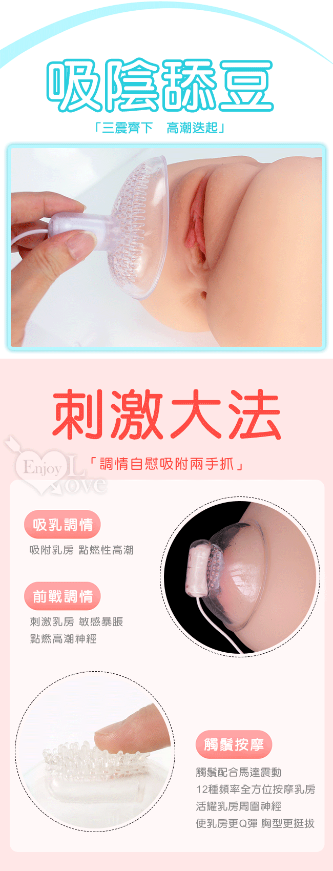 當前位置: 首頁 > 女性用品 > 陰/乳刺激器 > 吸星大法之撩乳弄陰器﹝3蠕吸震+10高頻震顫+軟刷觸鬚刺激﹞USB充電款