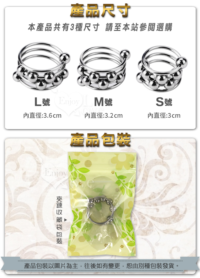 本系列產品共有3款,各個大小規格不一,從環內直徑3~3.6公分的都有,敬請參閱選購屬於自己適合的尺寸。