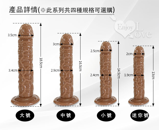小戰士系列擬真按摩棒,採用頂級TPR材質熱塑而成,軟硬度適中,不會過硬而讓使用者使用時感到不適,也不會太軟,是經過市場問卷調查後採用最多數女性可以接受的軟硬度而設計,而外型連陰莖上的皺摺與爆筋都完整的重現,此系列共有4種規格,本站特別推薦它非常適合少女或陰道窄小者來使用哦!。