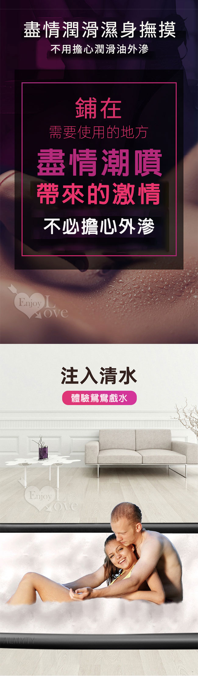情趣使用:可把產品放在如大床上、平地上等需要使用的地方上,然後潤滑油、精油全身塗抹 推拿啪啪,激情潮噴等不必擔心外漏且不會弄髒原床單。
