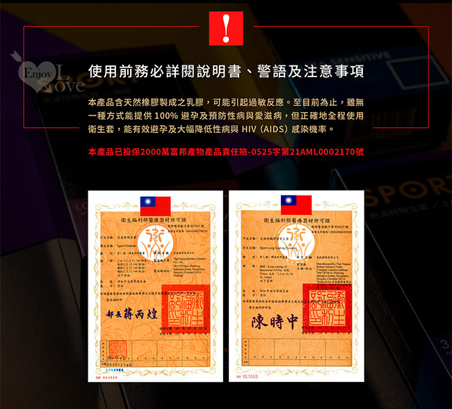 成分 : 由天然橡膠製成,含有潤滑劑及儲精袋設計