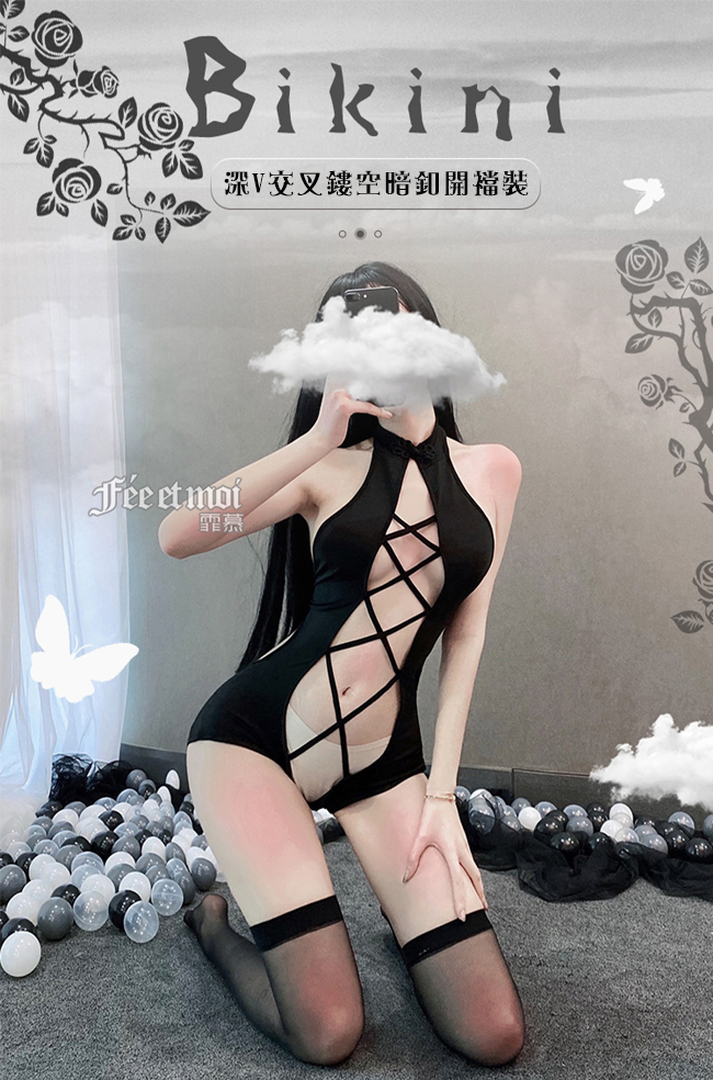 當前位置: 首頁 > 女性情趣內衣/褲 > 狂野連身衣 > 《FEE ET MOI》情趣連身衣!深V交叉鏤空暗釦開襠裸背兩件組 - 含絲襪