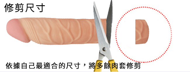 ※ 使用前可按照自身老二長度適當修剪加長套的長度。