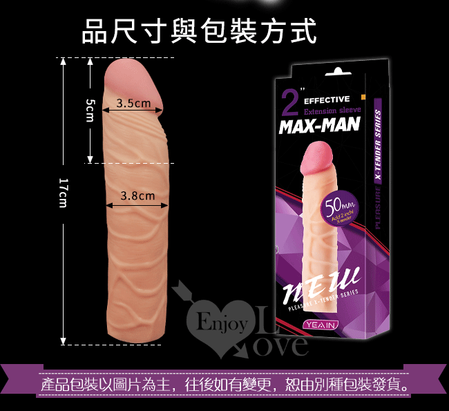 YEAIN夜樱系列產品在設計上極為逼真,5款樣式任君挑選,它們不論是龜頭的造型或是冠溝狀以及爆青筋的血管都完整的重現,龜頭前端2吋(5公分)部位是實心柔軟矽膠設計,可有效加長老二長度,老二直徑(粗度)可有效增加達30%,就像是第二層皮膚一樣,更可有效降低敏感度,有效的延長射精時間,只要戴上它,威武雄壯立即上身,保證讓房事更幸福美滿。