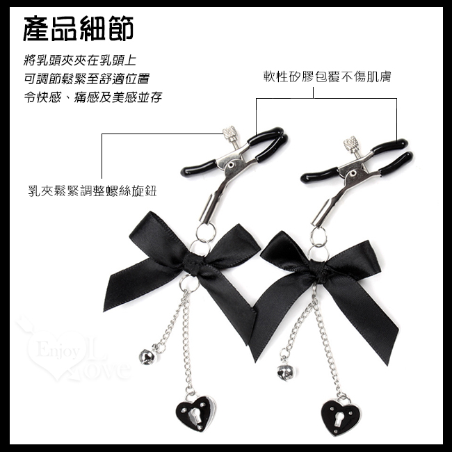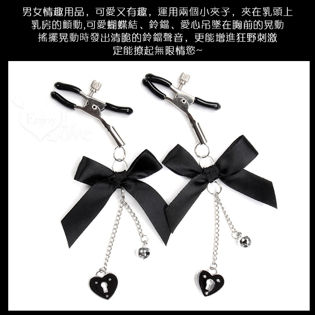 男女情趣用品,可愛又有趣,運用兩個小夾子,夾在乳頭上,乳房的顫動,可愛蝴蝶結、鈴鐺、愛心吊墜在胸前的晃動,搖擺晃動時發出清脆的鈴鐺聲音,更能增進狂野刺激,定能撩起無限情慾。