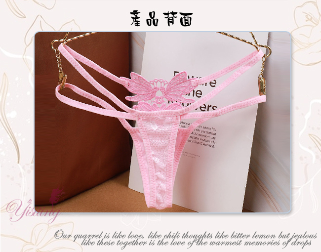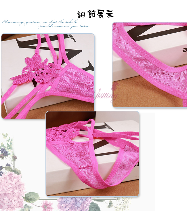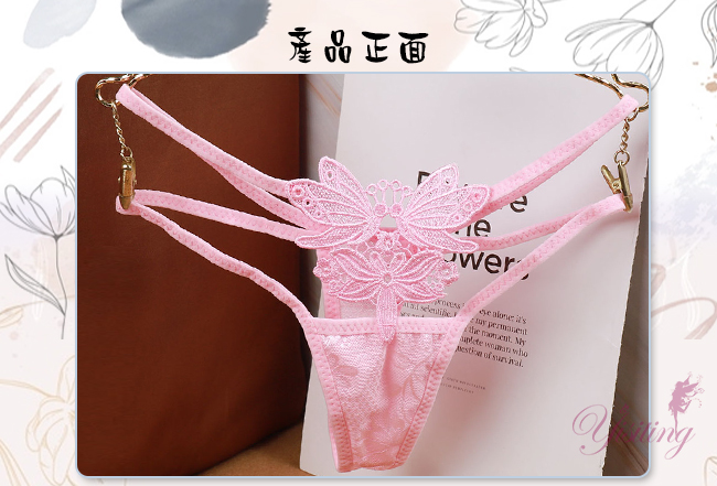 當前位置: 首頁 > 女性情趣內衣/褲 > 情趣T/丁字褲 > 《Yisiting》甜蜜舞動!蝴蝶雙飛彈力細帶花卉網紗美臀T字褲﹝粉﹞