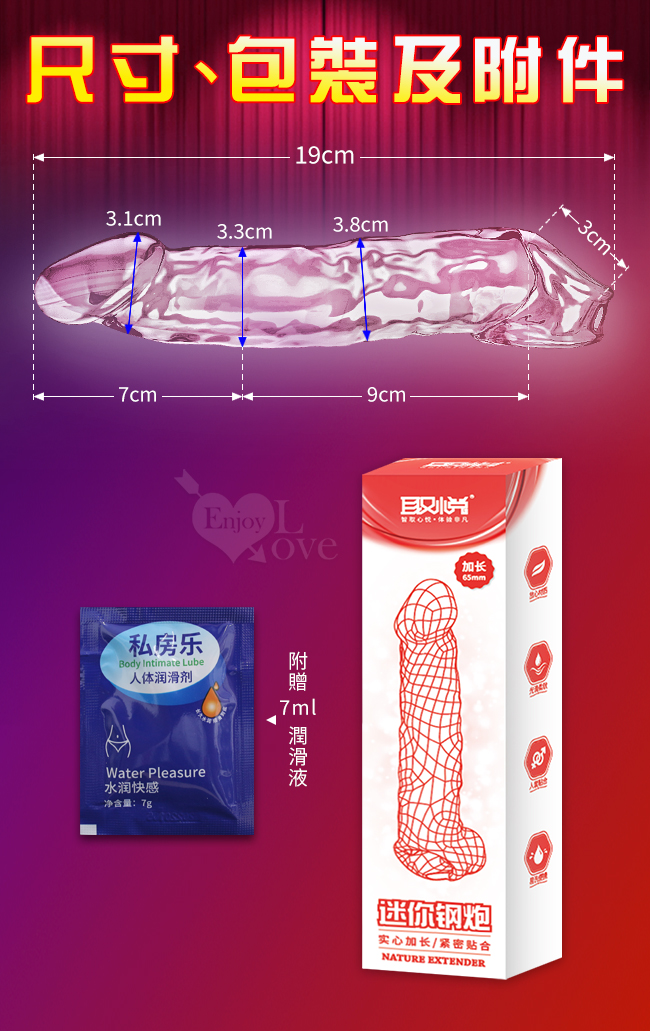 當前位置: 首頁 > 男性用品 > 猛男加強裝備 > 取悅 ‧ Mini Cannon 迷你鋼砲 前端實心加長7cm套蛋增粗套﹝全長19公分﹞