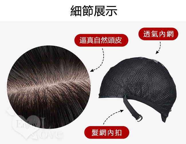 ■ 髮量材質是常規版的,不是很厚,參考頭圍最小不要小過52cm,最大不要超過56cm,內有鬆緊帶扣可調整大小。