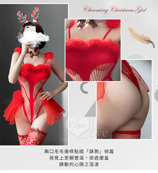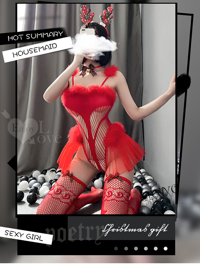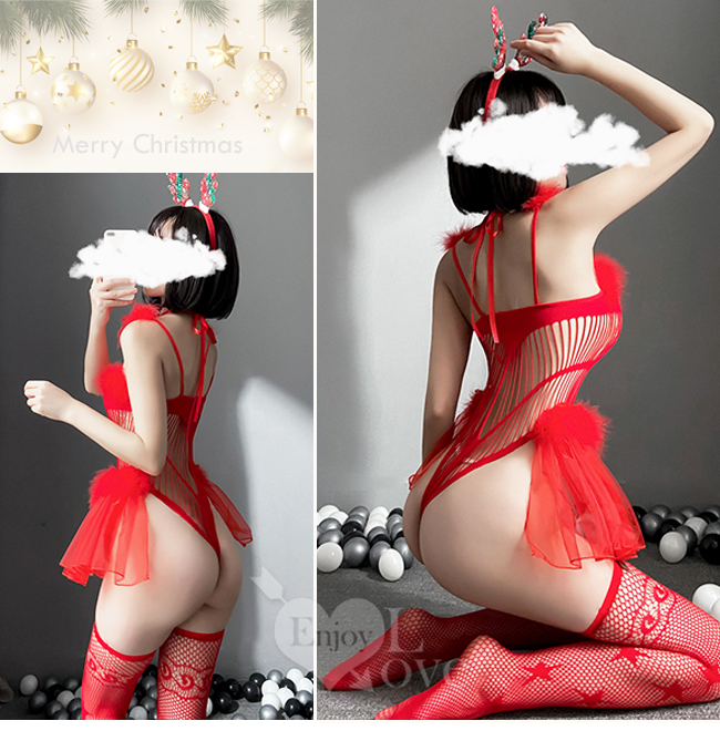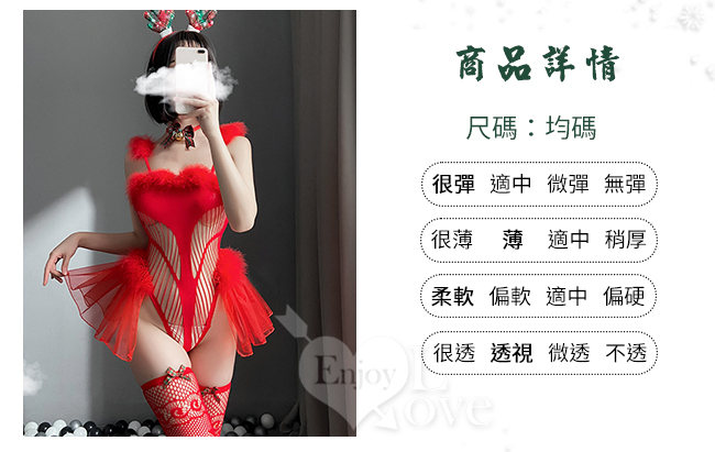 ※ 商品內容:麋鹿髮箍+鈴鐺頸環+連身衣+網襪。