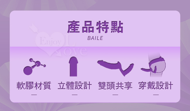 本商品可做為女同志專用雙爽型按摩棒,附帶有搭配穿戴褲時,較細小的一頭逼真老二棒可插入穿戴者的後庭或陰道,不只是能帶給對方快感,穿戴者本身也能同時享受極度快感,如此特別的產品是女同志朋友們的最愛。