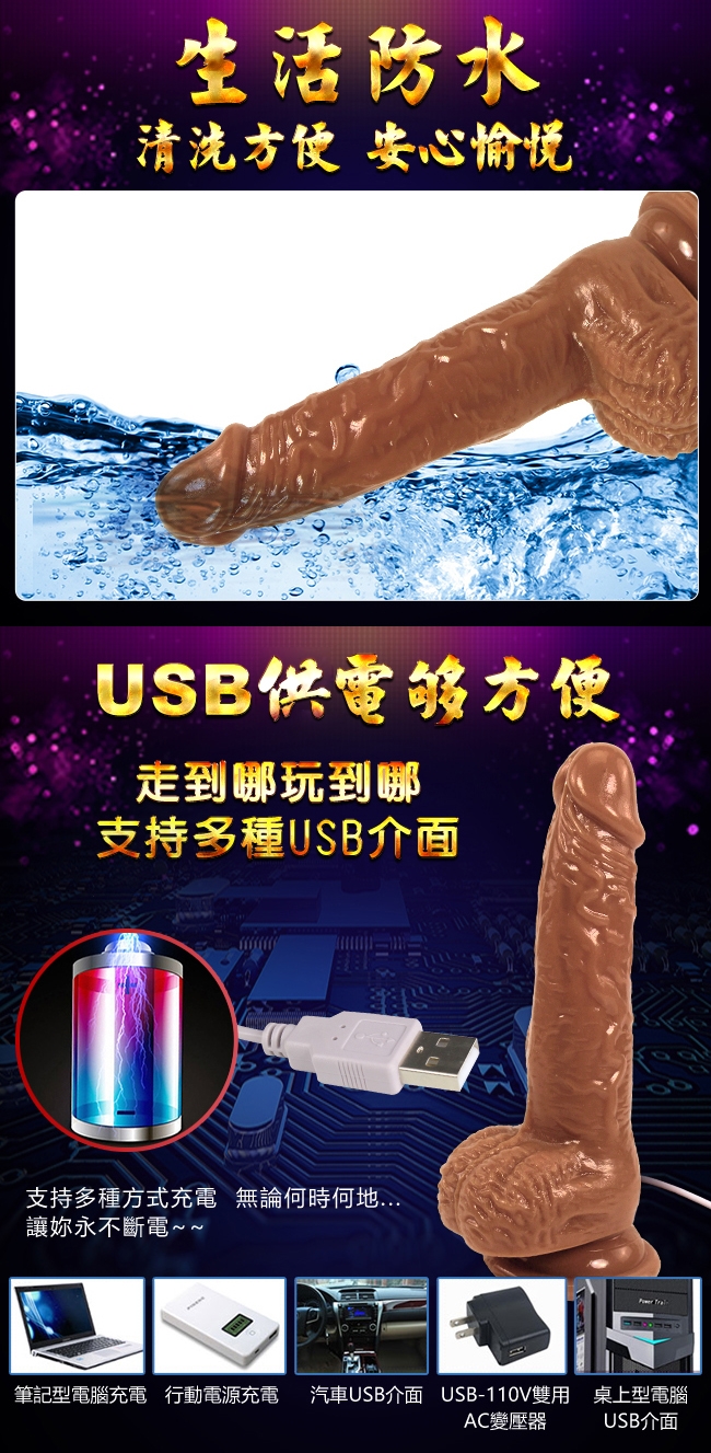 當前位置: 首頁 > 女性用品 > 逼真陽具 > 精悍陽根 ‧ 上下伸縮震動逼真肉感老二棒 - 棕色﹝6段變頻+固定吸盤+USB便捷供電﹞【特別提供保固6個月】