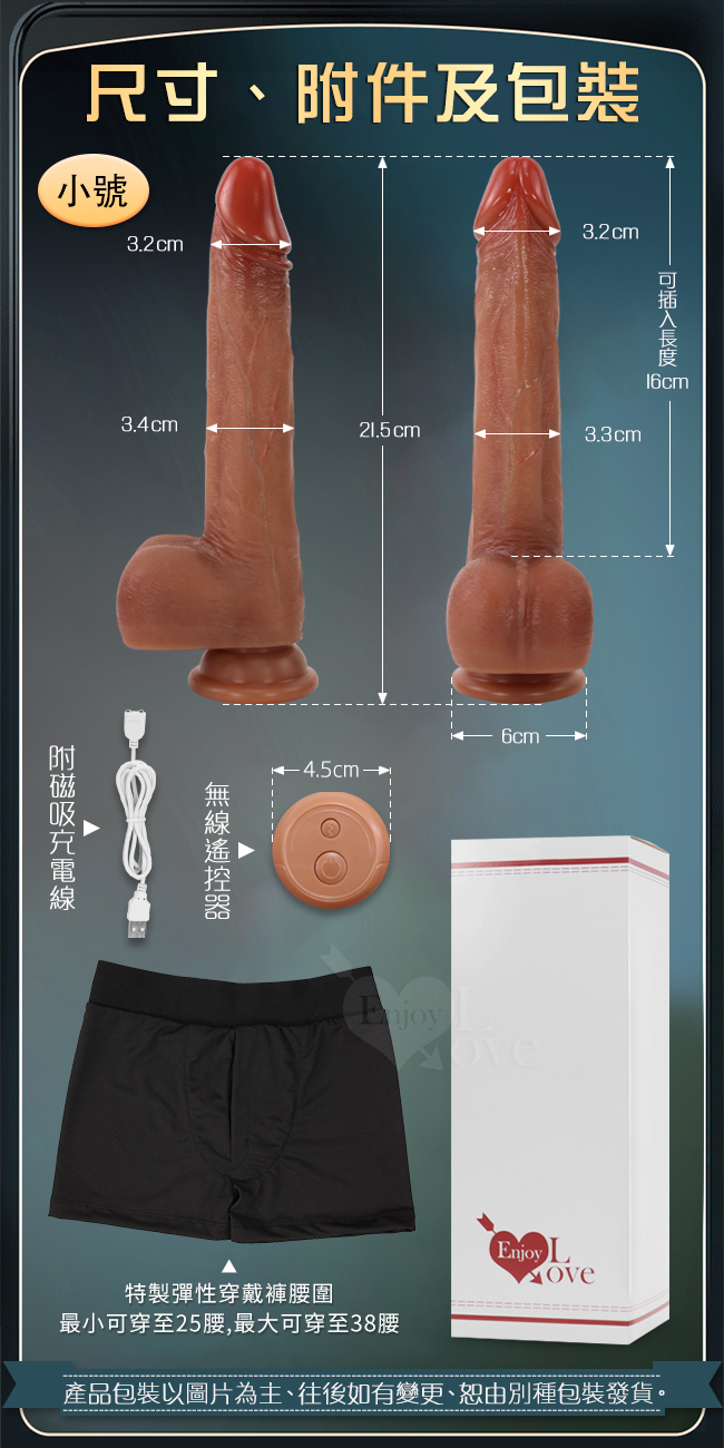 當前位置: 首頁 > 女性用品 > 女同志穿戴用品 > 強攻號角無線遙控版 ‧ 超高仿真Q彈肉感液態硅膠陽具+特製彈性穿戴褲﹝伸縮抽送撞擊+42°恆溫+磁吸充電﹞﹝小﹞【特別提供保固6個月】