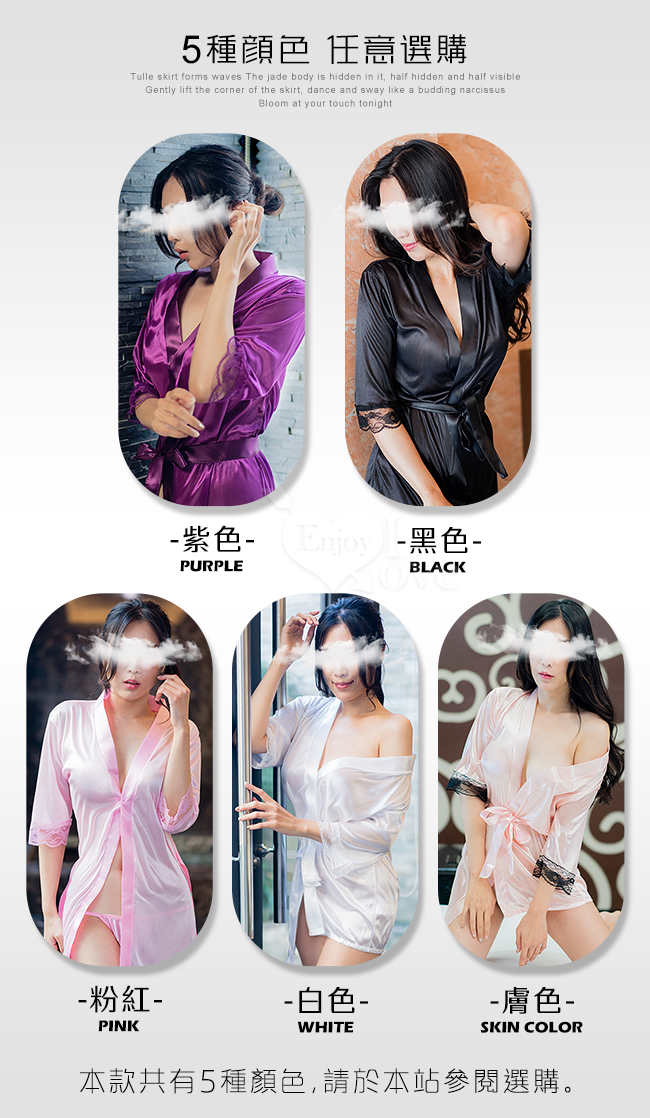 小編寄語:無論是浪漫粉色或是典雅白色,無不散發著雍容華貴的氣息,袖口的蕾絲點綴,增加性感度,做個高價質感的女人才會讓男人傾心!敞開式設計,無論身材纖瘦還是豐滿,穿起來都別有一番風味哦!
