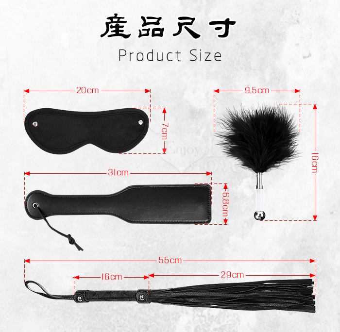 當前位置: 首頁 > SM情趣用品 > 皮拍_皮鞭 > 【SM調教】調教散鞭/戲謔手拍/酥癢羽毛棒/調情眼罩 4件套組﹝黑﹞