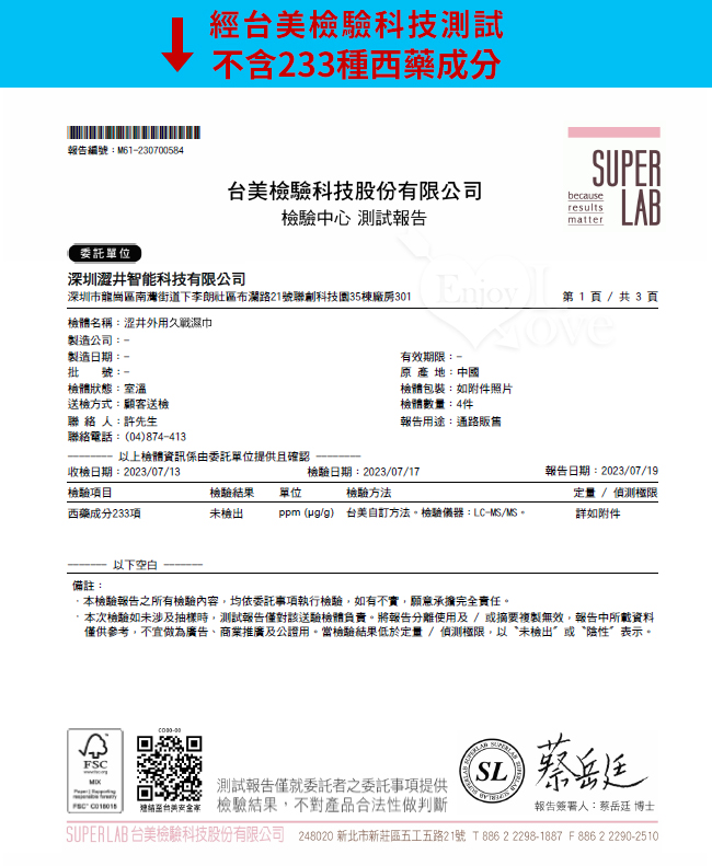 註:本品再業經台美檢驗科技股份有限公司,做233項西藥成份檢驗,結果都未檢出(如報告),敬請各位消費者安心使用。