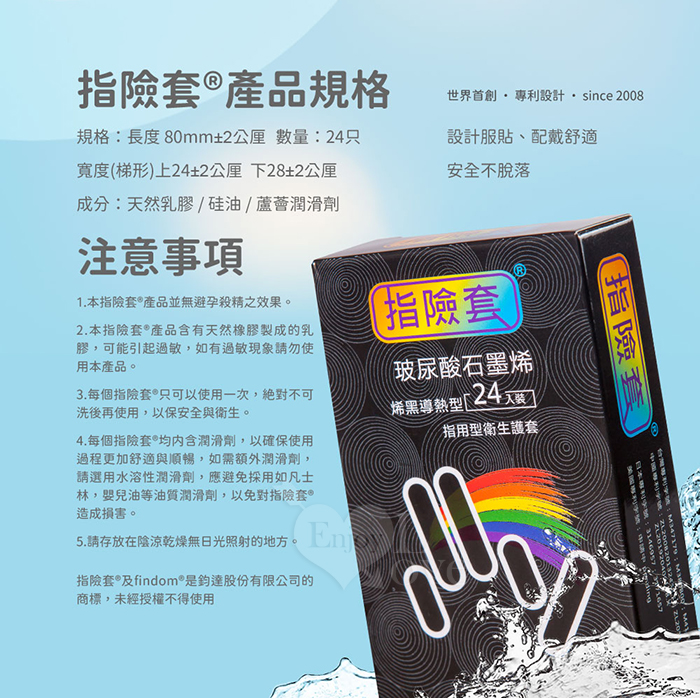 當前位置: 首頁 > 男性用品 > 猛男加強裝備 > Howey ‧ 玻尿酸石墨烯~烯黑導熱型指險套﹝G點按摩 指愛專用﹞24入裝