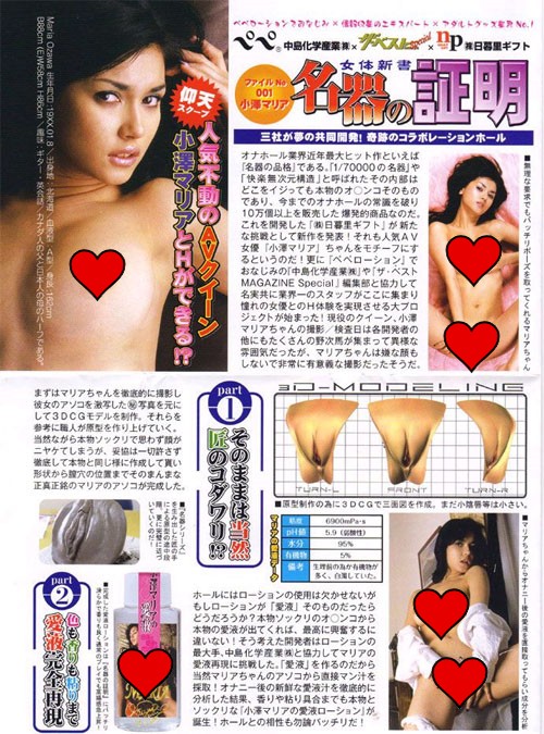 日本超級當紅女優小澤馬利亞代言之超級名器隆重登場,這款名器之證明採用了3D製模技術將小澤外陰完美呈現,內里則採用名器品格之設計,管道組織造得十分真實和複雜,插入感覺非常之逼真,此款和品格名器之分別為中段的G點軟組織更為突出更明顯,摩擦力更強,尾部模擬了子宮位置,令您能體會直插花心的極樂感受。