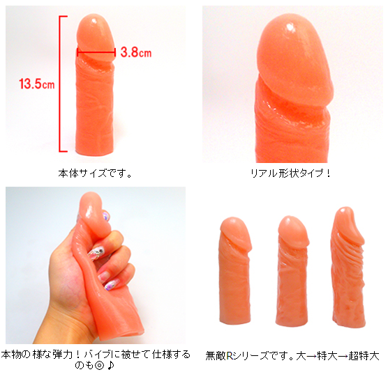 ソフト素材で形成された男性器に被せて使う男性用サポートアイテム「無敵R」。内部は空洞になっていて、そこへ男性器を入れて自身のモノよりもより大きく、太くさせることができます。もちろん、男性器を覆うということになるので、早漏防止にも役立ち、内部でしっかりと締め付けてくれるので血行を促進させ、勃起力アップにも効果を発揮してくれます。こちらの大は、全長12.5cmの標準サイズ!自信が持てないアナタに贈る、オススメのアイテムです。本体サイズ:12.5×Φ3.8cm
