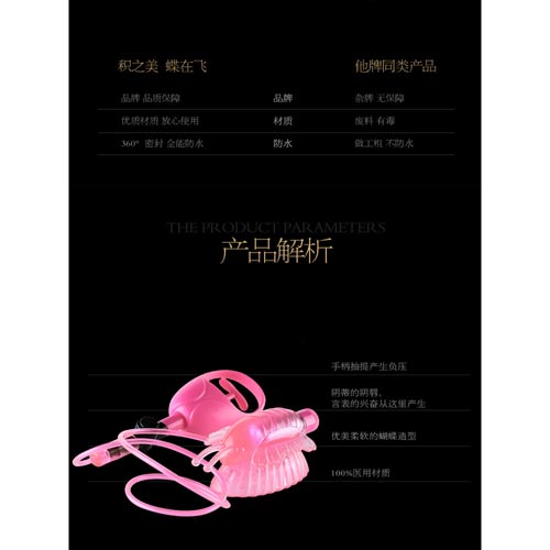 當前位置: 首頁 > 女性用品 > 陰/乳刺激器 > 香港積之美~*蝶在飛陰蒂乳房按摩震動自慰手柄抽吸女用自慰器高潮抽插