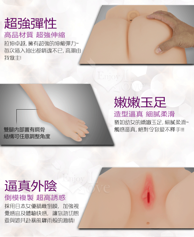 ※ 本品為雙交功能(陰交,肛交功能),實品為帶不銹鋼骨骼的矽膠體,膝蓋關節,腳踝都可任意折疊轉換大腿姿勢。