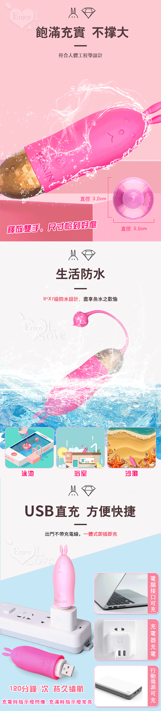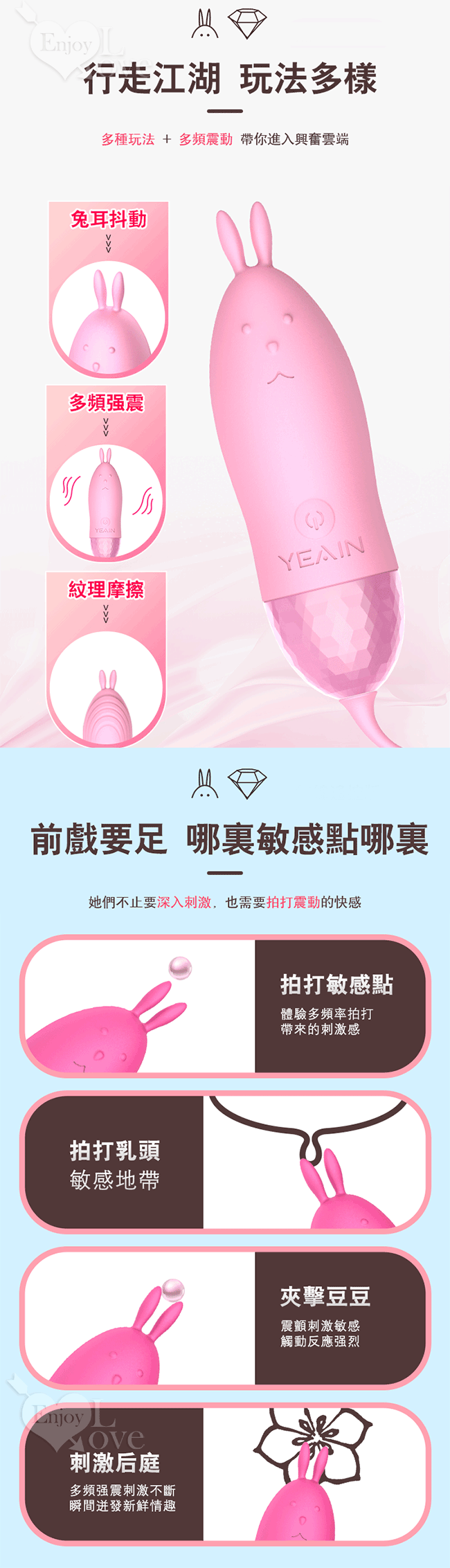 ※ 兔子外形可愛迷人,10頻酥麻強震,親膚材質貼合女性尺寸,USB直充方便快捷,噪音小,體驗感非常好。