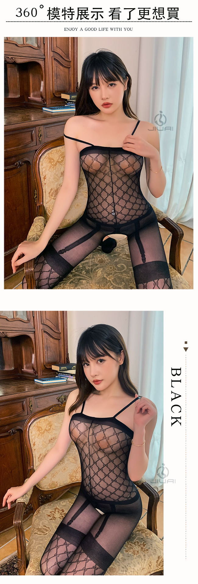 當前位置: 首頁 > 女性情趣內衣/褲 > 狂野連身衣 > 《JIUAI》絲襪連身衣!彈力肩帶裸膚方格拼接假式吊襪帶開襠裝