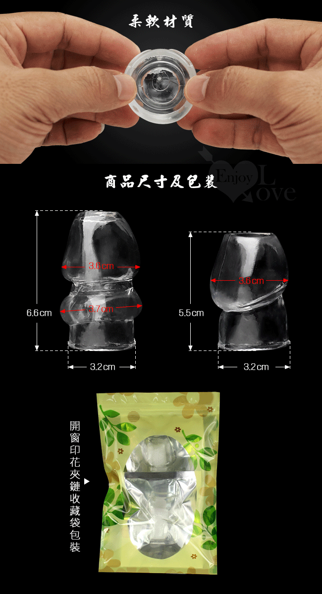 當前位置: 首頁 > 男性用品 > 猛男加強裝備 > Enjoy Love ‧ 露頭雙龜頭套 - 彈性包龜延時加強套環﹝增粗刺激~減低敏感度~愛愛更持久﹞大小2只裝*