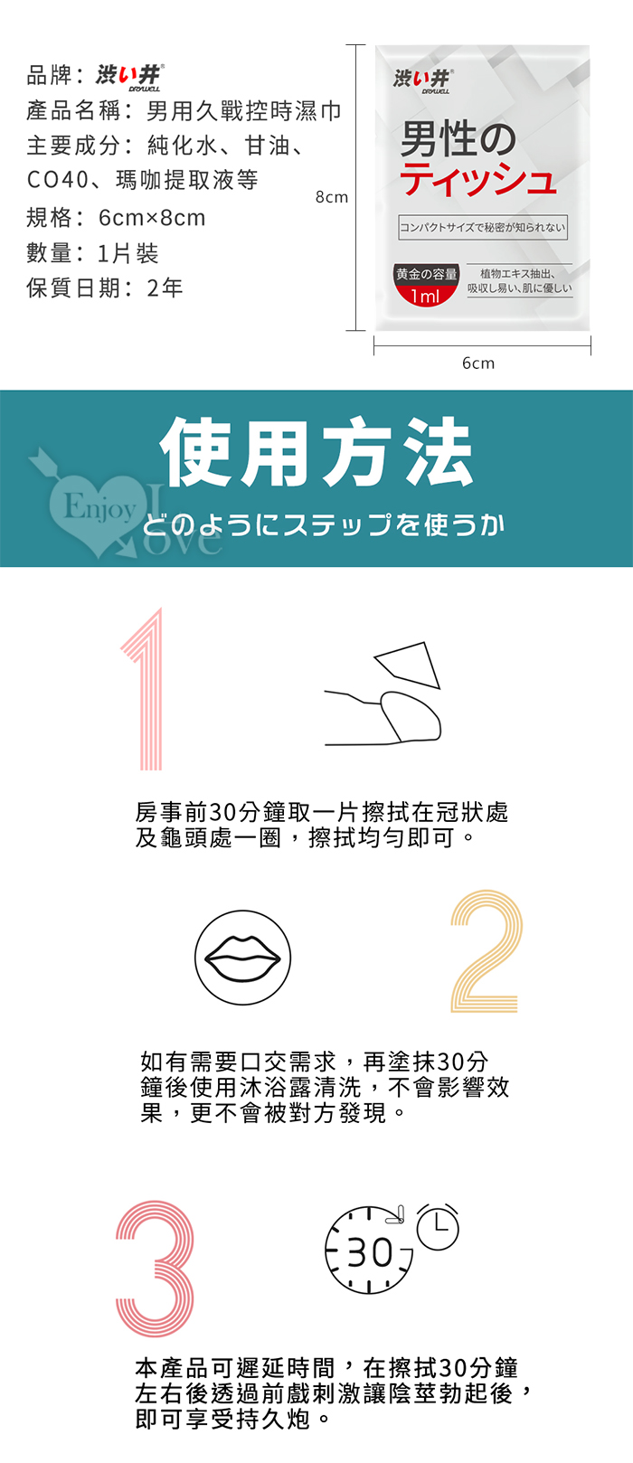 本產品符合通過ROHS歐盟認證標準,不含有害成分、金屬成分及MSDS物質安全通過檢測(如圖示),純植物萃取物,絕對不含任何化學成分葯物,外用遲延,減低敏感而不麻木,為愛續航時間長。